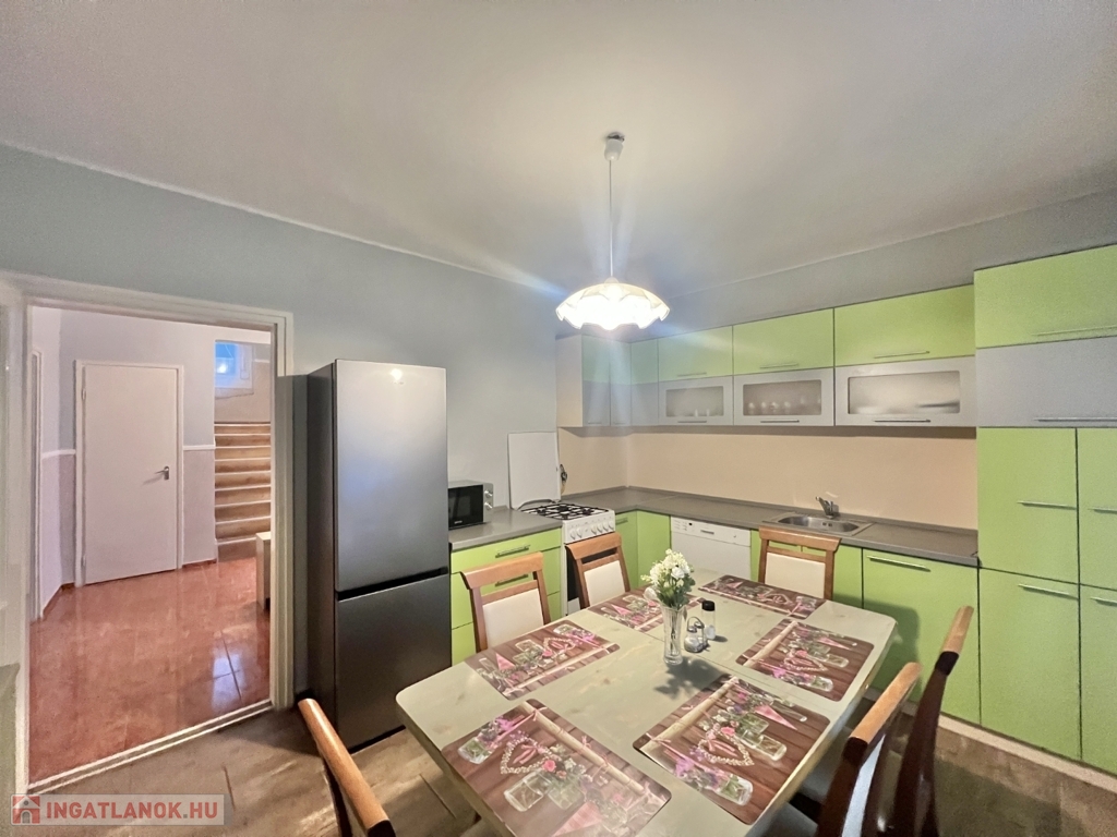 Kaposváron a Donner egyik csendes utcájában a Hegyalja utcában - akár azonnal is költözhető 140 m2-es családi ház berendezéssel együtt hosszú távra kiadó. A lakóház alsó szintjén előszoba, nappali, konyha-étkező, fürdőszoba, kazánház, 1 személyautó részére garázs helyiségek találhatóak. Az emeleten 3 szoba - az egyikhez kis gardrób is tartozik, előtér, fürdőszoba, wc helyiségek kerültek kialakításra. A családi ház fűtése gázközponti-, és vegyesközponti fűtéssel megoldott. A dohányzás és a kisállat tartása nem engedélyezett. Bérleti díj: 500.000.- Ft/hó + rezsi + 2 havi kaució