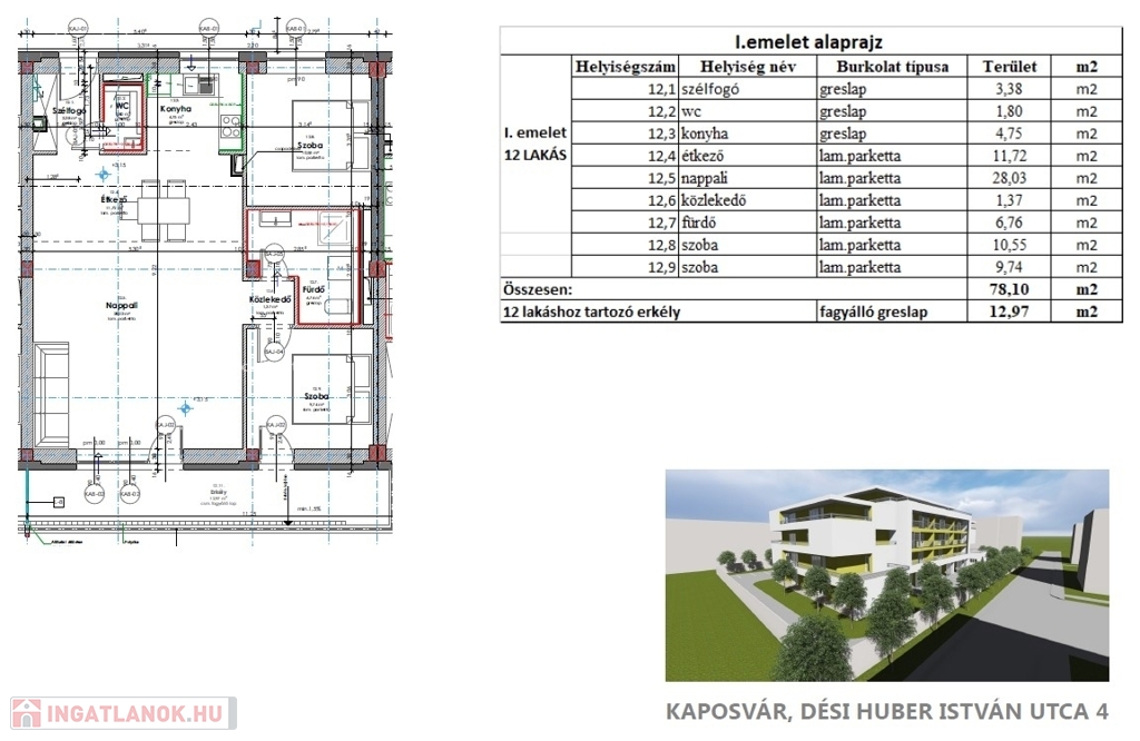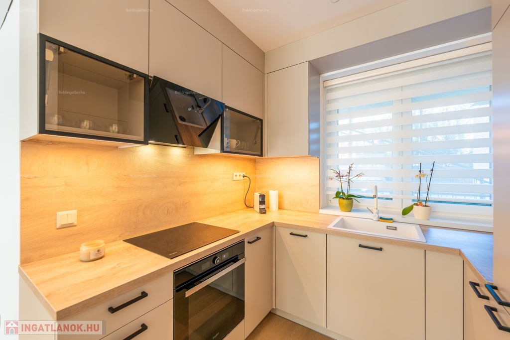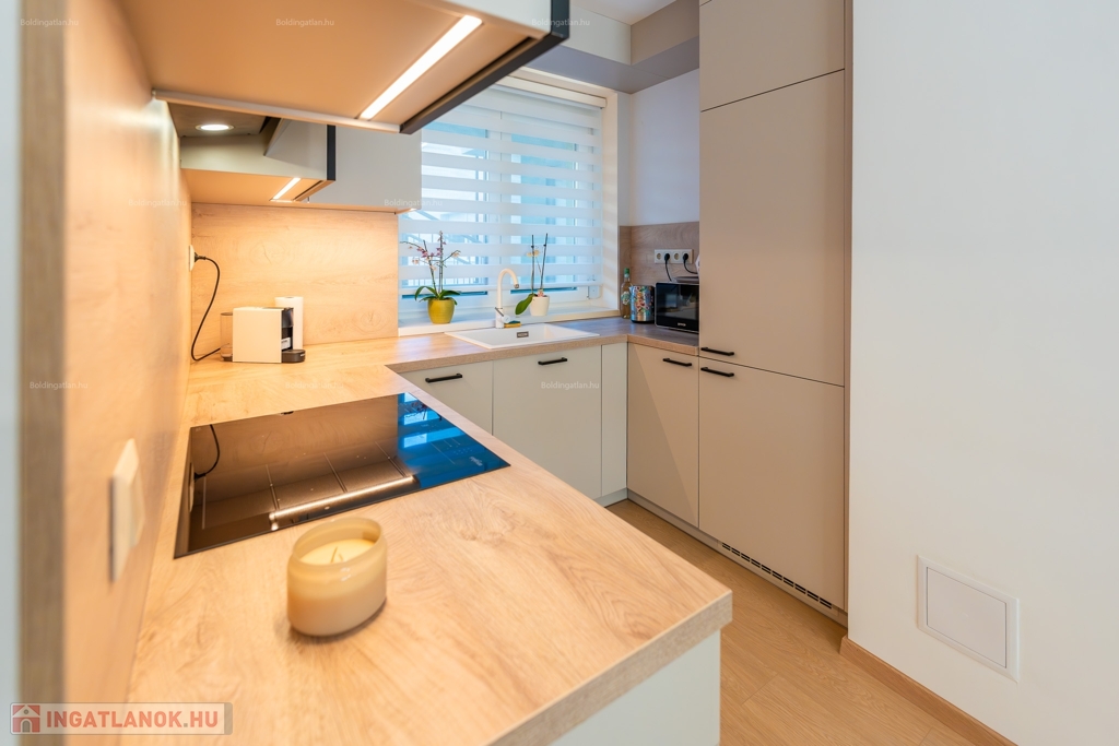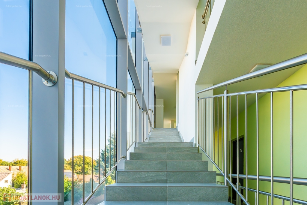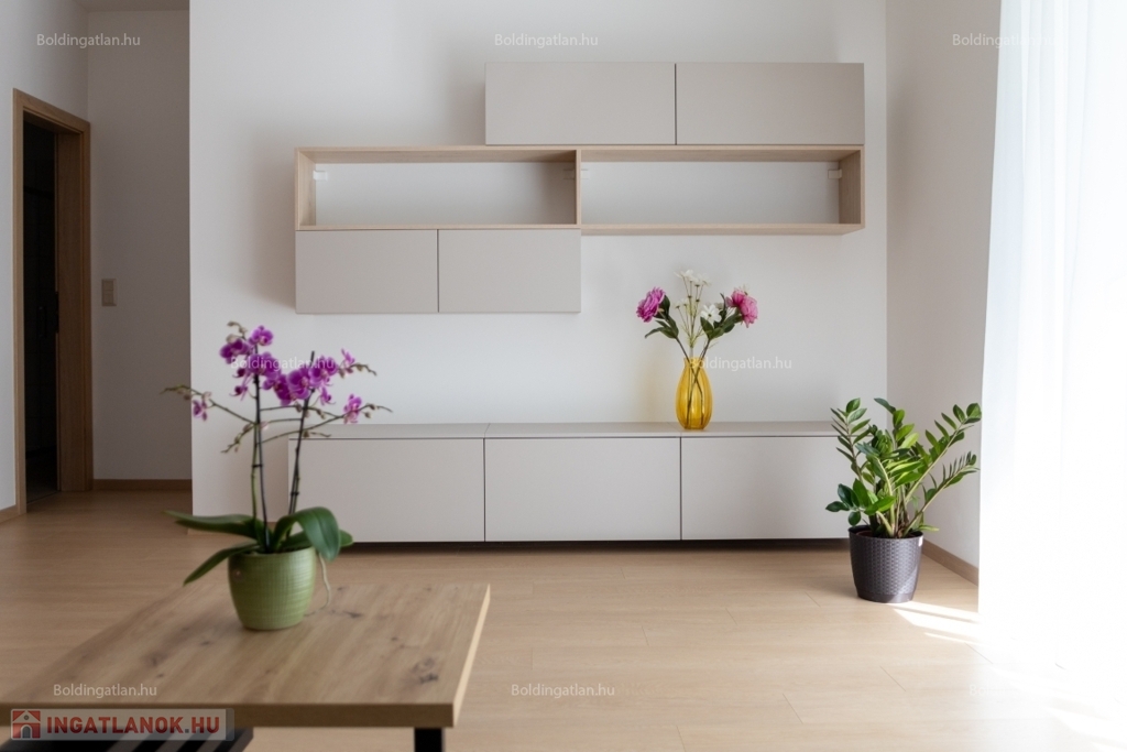 Kaposváron a belvárosban, a Dési Huber utcában - a kórház közelében - igényes kivitelben épült, modern architektúrájú 30 lakásos, új társasház 1. emeletén, 79 m2-es bútorozott és gépesített lakás + 14 m2-es terasszal együtt kiadó. A lakásban nappali-étkező-konyha, 2 szoba, közlekedő, szélfogó, fürdőszoba-wc, wc helyiségek kerültek kialakításra. Az épület korszerű energetikájú, a lakás fűtés levegő-víz hőszivattyús Nibe fűtésrendszerrel - padlófűtéssel, a fürdőszobában elektromos törölközőszárító radiátorral biztosított, továbbá a lakás hűtése Gree típusú Fan-coil rendszerrel történik, a fürdőszobában magas minőségű Wellis szerelvények kerültek beszerelésre. A lakás fűtéséhez, vagy hűtéséhez szükséges villamosenergiát az épület tetején elhelyezett napelemek biztosítják, a társasházban központi vízlágyító berendezés is beszerelésre került. A lakáshoz tartozik 1 személygépkocsi beálló az épület zárt udvarában. A kórház az épület közvetlen közelében van, továbbá általános iskola 200 m, gimnázium 500 m, további közintézmények is néhány perc alatt kényelmesen elérhetőek gyalog. Bérleti díj: 300.000.- Ft/hó + rezsi + 2 havi kaució