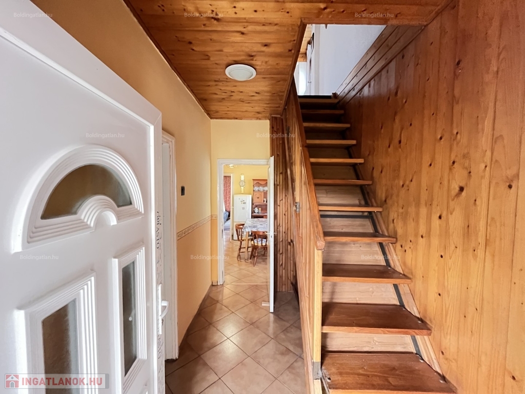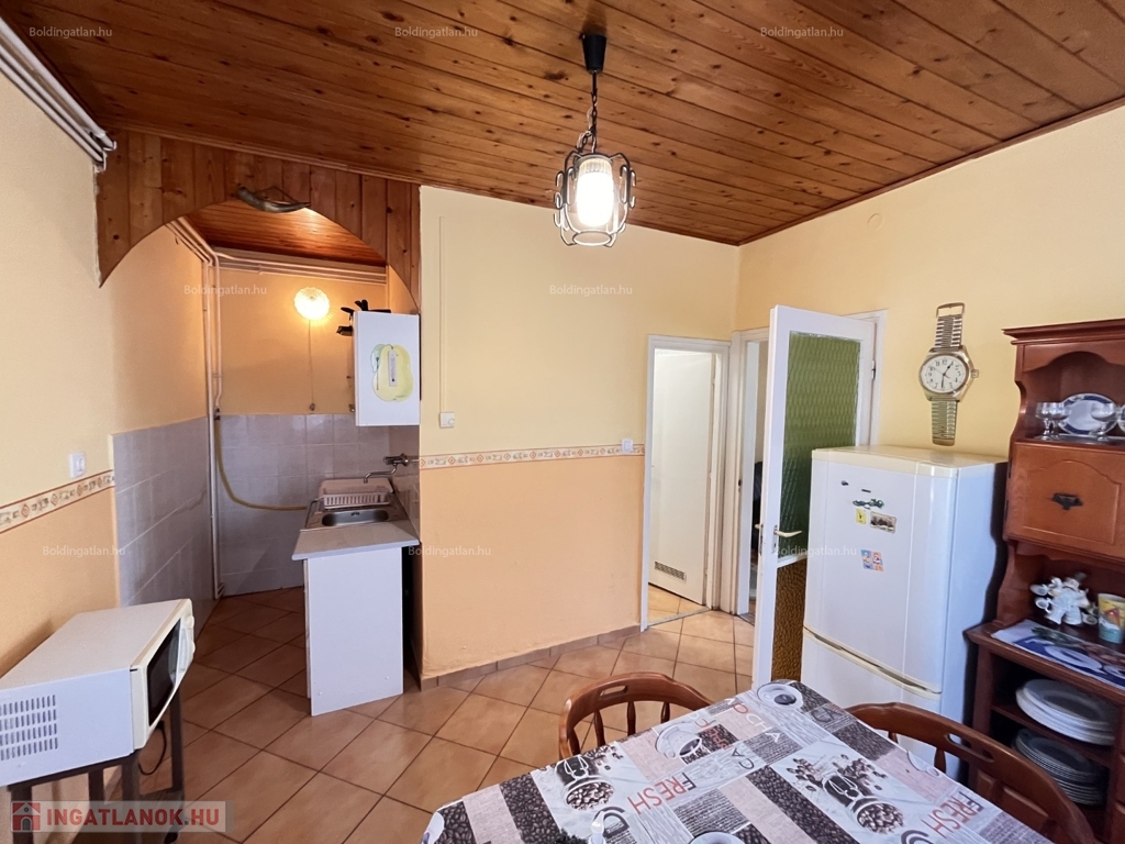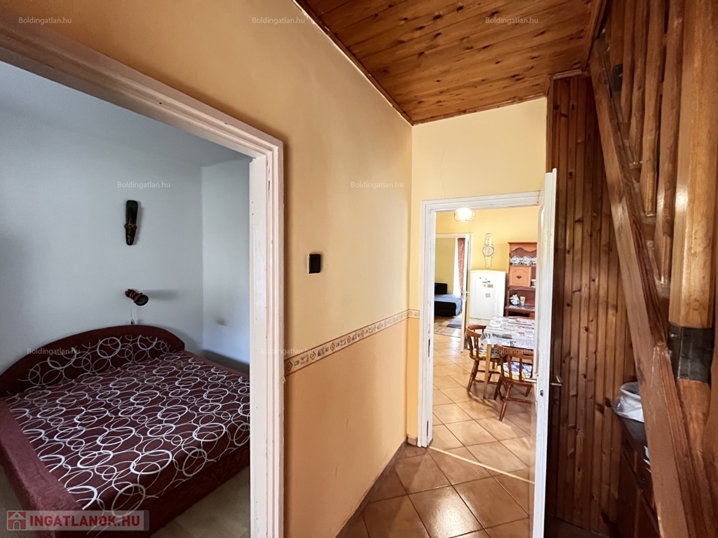 Balatonbogláron a központtól kb. 800 m távolságra, nyugodt környezetben lévő 102 m2-es családi ház, a képeken látható műszaki állapotban, különálló 25 m2-es lakrésszel, továbbá garázzsal együtt eladó. Az épület alsó szintjén világos nappali, 1 szoba, konyha-étkező, fürdőszoba-wc, a felső szinten további 2 szoba, wc helyiségek találhatóak, a fűtése és melegvíz ellátása kombi gázkazánnal megoldott. Az udvaron található egy 20 m2-es garázs, valamint egy külön bejáratú lakrész amelyben 1 szoba, konyha, fürdőszoba-wc helyiségek vannak. Az ingatlan 500 m sugarú körében iskola, óvoda, gyógyszertár, orvosi rendelő és élelmiszerbolt megtalálhatóak, a szabadstrand 1 km távolságra van. Az ingatlan befektetésnek is alkalmas lehet, a kialakítása végett nyaraltatásra is hasznosítható. Telek: 511 m2