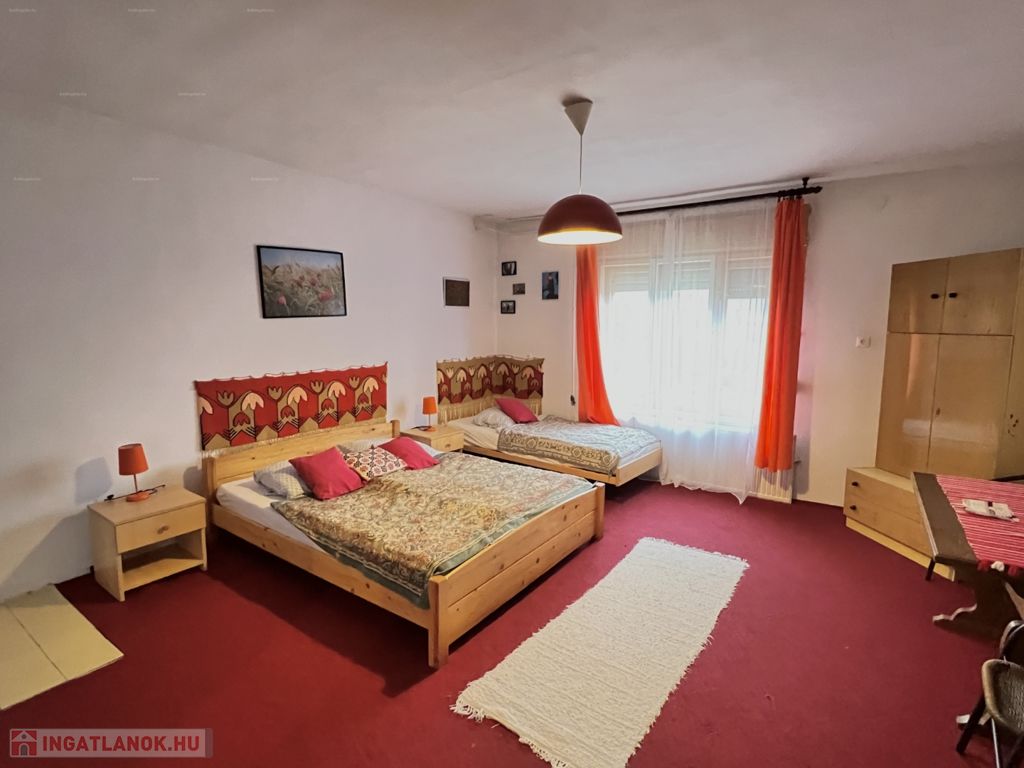 Mucsiban, kedves kis faluban, kifejezetten csendes környezetben – dupla - telken lévő 132 m2-es vegyes falazatú családi ház eladó. A lakóházban nappali, 3 szoba, étkező, konyha, kamra, közlekedő-fürdőszoba, wc helyiségek kerültek kialakításra, továbbá tartozik hozzá egy udvarra néző 38 m2-es fedett terasz, továbbá kazánház, és 1 személyautó részére garázs is. Az épület fűtése jelenleg vegyestüzelésű kazánnal megoldott, további igény esetén a gáz az ingatlan előtt az utcában van. Az épület tetejét, illetve a villamoshálózatot 2 évvel ezelőtt cseréltette ki az ingatlan tulajdonosa, továbbá 380V is bevezetésre került. Az ingatlan jelenleg vendégházként üzemel, így akár befektetésnek is kiváló lehetőség lehet. Telek: 2.432 m2