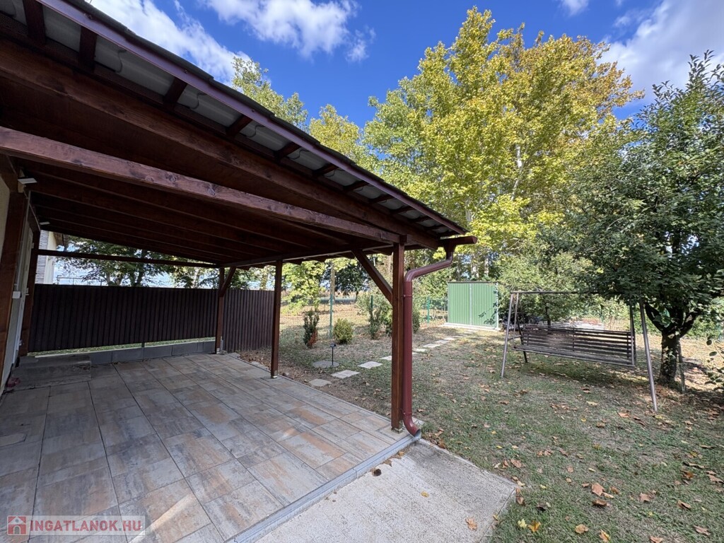 Dombóvár - Gunarasban - a gyógyfürdőtől csupán 200 m-re található - akár azonnal is birtokba vehető - 35 m2-es téliesített nyaraló eladó. Az épületben előszoba-nappali, 2 félszoba, kis konyha beépített konyhabútorral (Candy mosogatógéppel, Bosch főzőlappal és Cata elszívóval), kamra-kijárattal a hátsó fedett teraszra. Az épület akár télen is használható, a fűtése kandallóval megoldott, valamint a nappaliban légkondicionáló is felszerelésre került. A parkolás gépkocsival az udvarban lehetséges, ahol kerti csap, és szerszámok tárolására alkalmas kisház is áll. Telek: 305 m2.