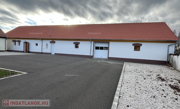 Kaposváron (Kaposfüred városrészben) az Állomás utcában rendezett környezetben található, 2024-ben felújított telephelyen 223 m2-es raktár-iroda épület + 190 m2 akár élelmiszergyártásra is alkalmas épület kifejezetten hosszú távra - kizárólag egyben kiadó. A 223 m2-es épületben 3 iroda, közlekedő, konyha, zuhanyzó-wc, valamint egy 9 m2-es és egy 144 m2-es raktár 2 db garázsajtóval, akár 3 tonna teherbírásra erősített födémmel helyiségek találhatóak. A 190 m2-es épületben előtér, labor, 2 gyártóhelyiség, külön férfi és női zuhanyzó-wc, garázs-kazánház helyiségek találhatóak. Az épületek fűtése Brötje kombi kazánnal és elektromos fűtőpanelokkal megoldott, valamint a kisebbik helyiségben Gree típusú hűtő-fűtő légkondicionálók is felszerelésre kerültek. Az épületek tökéletes műszaki állapotban vannak, az udvarban több teherautó is elfér, egy része térkővel borított. Az udvarra behajtás 2 db távirányítású kapun keresztül lehetséges, valamint kamerás riasztó rendszer is telepítésre került. Telek: 2.235 m2 Bérleti díj: 500.000.- Ft/hó + rezsi + 2 havi kaució (823) Amennyiben az ingatlan felkeltette az érdeklődését, kérem hivatkozzon a 823. számú ajánlatra! Irodánk címe: Kaposvár Irányi D. u. 9.