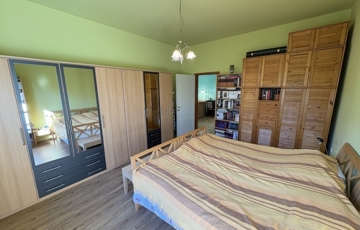 Balatonszárszón 96 m2-es nagyon jó műszaki állapotú családi ház, 44 m2-es melléképülettel, gondozott telekkel eladó. A lakóházban előszoba-nappali, 2 szoba, közlekedő, konyha-étkező beépített konyhabútorral és gépekkel (AEG micro és mosogatógép, elektromos főzőlap és elszívó, Electrolux sütő, és hűtőszekrény), fürdőszoba, wc pissoirral, kamra helyiségek kerültek kialakításra, valamint a közlekedőből nyílik a lejárat a 10 m2-es pincébe is. A lakóház fűtése NOBO elektromos fűtőpanelekkel és a nappaliban kandallóval megoldott, a melegvíz ellátást villanybojler biztosítja. Az épület energetikai korszerűsítésen esett át, amely során a tulajdonos a homlokzatra 15 cm-es BAUMIT hőszigetelést, a padlás födémre 20 cm kőzetgyapot szigetelést rakatott, új borovi fenyő nyílászárókat építtetett be - az ablakokra fémredőnyt rakatott fel, valamint vízszűrőt és riasztót is felszereltetett. A rendezett udvaron 44 m2-es belülről részben már felújított, kívülről szintén hőszigetelt melléképület-kisház áll új Terran Zenit , amelyben egy 1 szoba-konyhás udvari lakrész kialakítható, valamint 1 személyautó részére garázs és tároló is található. Az ingatlan a kitűnő lokációja és a kialakítása miatt akár nyaraltatásra is alkalmas lehet, az autópálya 5 percre van, élelmiszerboltok a közelben megtalálhatók, a strand is csupán 800 m-re van. Telek: 1.429 m2 (155)