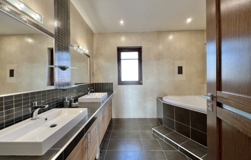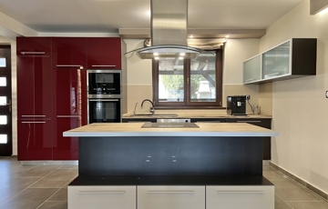 Kaposvár egyik kifejezetten kedvelt részén, a Kecelhegyen, exkluzív kialakítású 313 m2-es, háromszintes - akár két generáció számára is kialakítható - igényes családi ház eladó. A lakóház szuterénjében 2 személyautó részére alkalmas garázs, dolgozószobaként használt helyiség, hobbi-, vagy akár konditeremnek alkalmas-, zuhanyzó és wc helyiségek találhatóak. A földszinten nappali-étkező-konyha, fürdőszoba, wc kerültek kialakításra, az emeleten 3 tágas hálószoba, belső udvar felé néző fedett terasz, előtér, továbbá fürdőszoba helyiségek vannak. Az épület fűtése és melegvíz ellátása korszerű hőszivattyúval - padlófűtés és radiátorokkal - megoldott, a villany ellátást 7,5 kW-os napelemrendszer biztosítja, a szobákban trópusi fa parketta, egyéb helyiségekben kerámia járólap burkolat van, továbbá 3 rétegű fa nyílászárók lettek beépítésre, valamint riasztórendszer és légkondicionálók kerültek felszerelésre, illetve egyedi beépített szekrények és gardróbok is beszerelésre kerültek. A további kényelmet fokozza az udvaron található 8x3,5 méteres úszómedence is. Telek: 489 m2